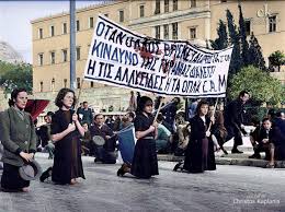 Την Κυριακή το πρωί, 3 Δεκέμβρη 1944, παρά την απαγόρευση και τις απειλές οι ΕΑΜίτες πλημμυρίζουν τους δρόμους. Πρόκειται για τη μεγαλύτερη διαδήλωση που έγινε ποτέ στην πρωτεύουσα. Υπάρχουν δεκάδες μαρτυρίες απο ξένους δημοσιογράφους και πολιτικούς τρίτων χωρών, οτι το πλήθος ήταν άοπλο που απλά τραγουδούσε στους δρόμους… δεν έχει ιδιαίτερη σημασία να αναφερθούμε εδώ σε καθεμία ξεχωριστά, τις εχω γράψει και παλιότερα.