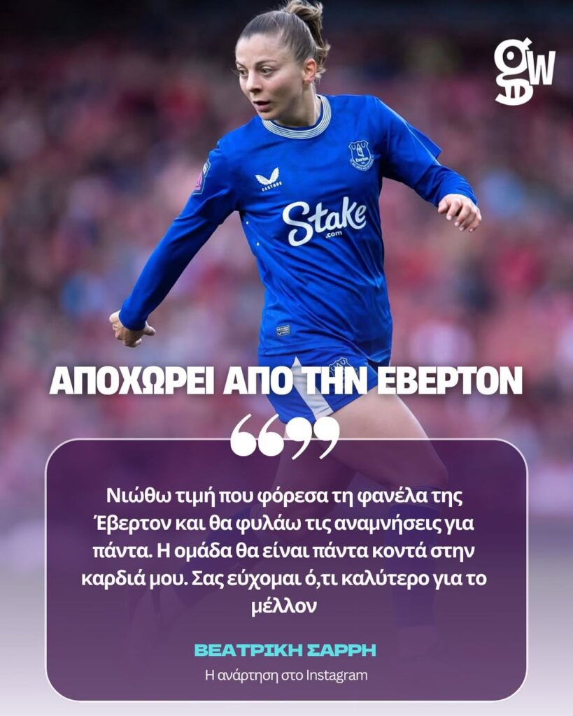 Μετά από μία σεζόν με τη φανέλα της Εβερτον η Βεατρίκη Σαρρή αποχαιρετά τα “ζαχαρωτά” και ετοιμάζεται για νέες ποδοσφαιρικές προκλήσεις.
