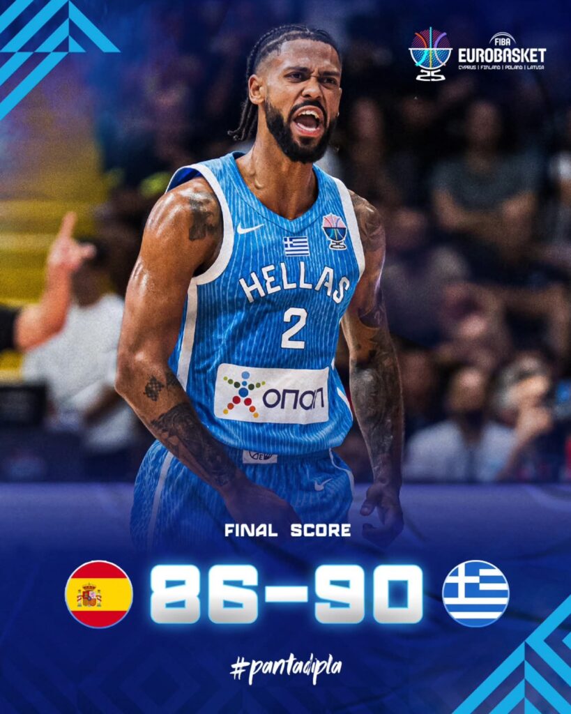 Η Εθνική Ανδρών νίκησε την Ισπανία με 90-86 στην τελευταία της παράσταση στο “Σπύρος Κυπριανού” στη Λεμεσό, τερμάτισε πρώτη στον όμιλό της και απέκλεισε τους Ίβηρες από την συνέχεια της διοργάνωσης.
