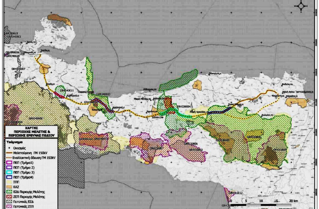 Οσο για την σκοπιμότητα του έργου, η όδευση της Νέας Γραμμής Μεταφοράς Yψηλής Τάσης σε αντιπαραβολή με τις θέσεις των αιολικών πάρκων στον χάρτη της Ρυθμιστικής Αρχής Ενέργειας (ΡΑΕ), οι αναφορές στην Μελέτη Περιβαλλοντικών Επιπτώσεων ότι η ανάπτυξη ΑΠΕ καθιστά το υφιστάμενο δίκτυο ανεπαρκές ως προς την μεταφορική του ικανότητα και η απόφαση 88/2023 της ΡΑΕ που καθορίζει το περιθώριο εγκατάστασης ΑΠΕ στην Κρήτη μεταξύ 2.150-2.500 MW (ενώ οι ενεργειακές ανάγκες του νησιού δεν ξεπερνούν τα 800 ΜW) πείθουν ότι αυτό το παράνομο και καταστροφικό έργο σχεδιάστηκε για να ικανοποιηθούν τα συμφέροντα συγκεκριμένων Αιολικών εταιρειών.