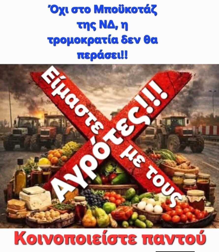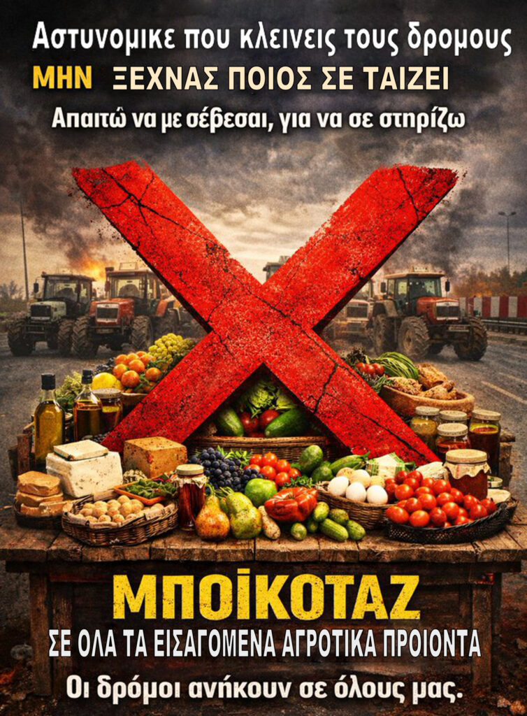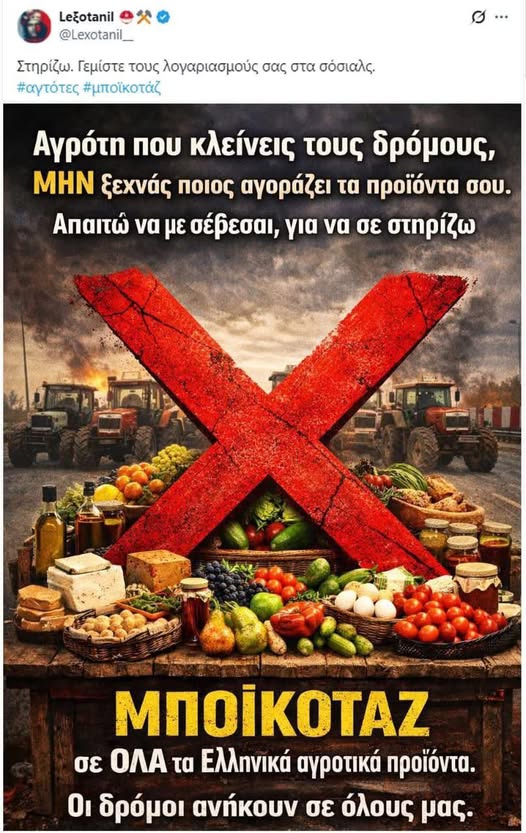 Κυβέρνηση Αίσχος: Η Απόλυτη αλητεία καλούν σε µποϊκοτάζ τα τρολ της υπόγας του Μαξίμου κατά Αγροτών – Διαδίδουν “ΜΠΟΙΚΟΤΑΖ σε ΟΛΑ τα Ελληνικά αγροτικά προϊόντα”